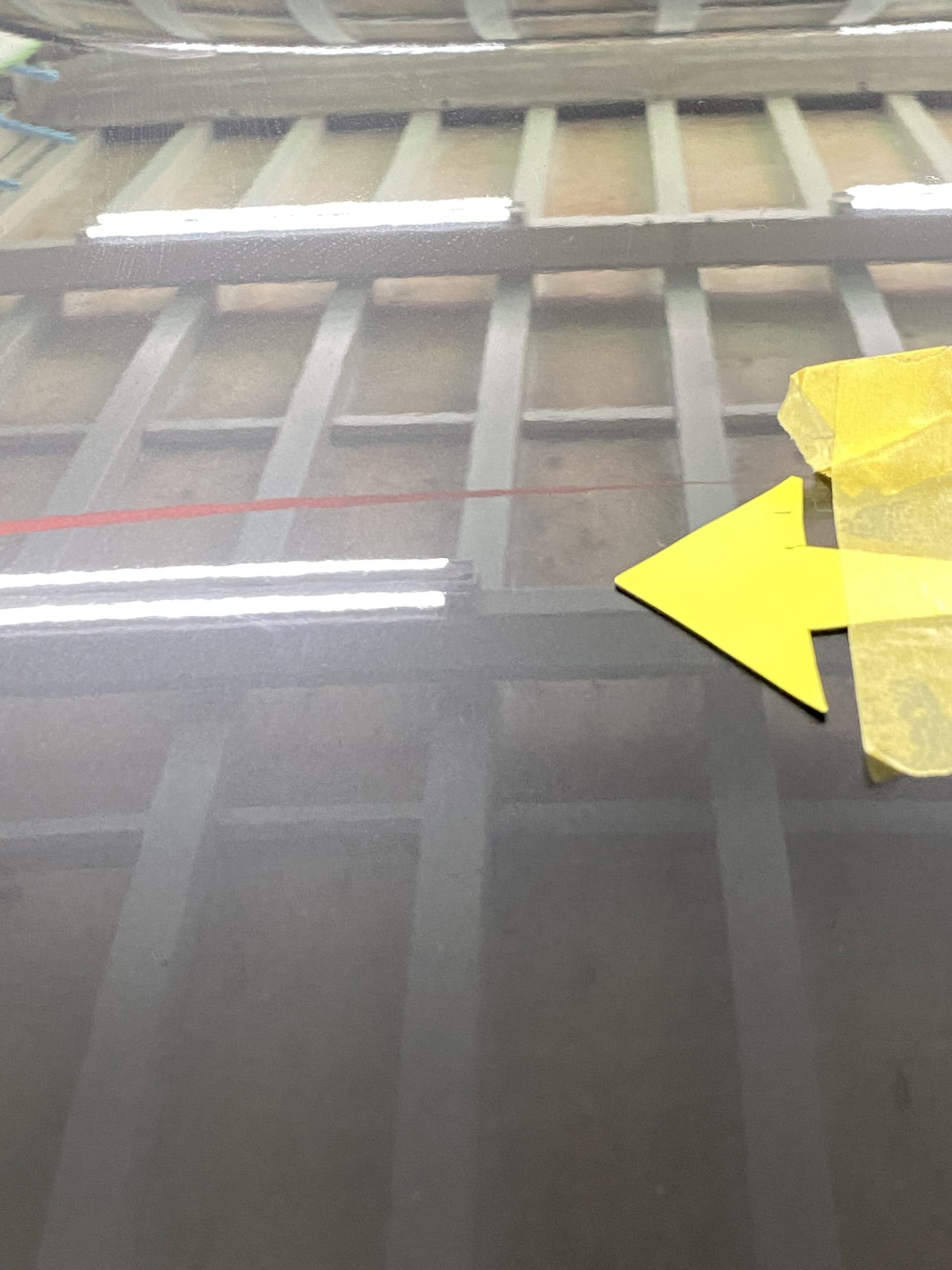 ボンネットの走行中に物がブツかったヘコミです。